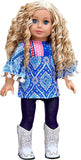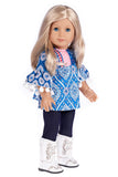 Stylish - 3 Piece Doll Outfit for 18 inch American Girl Doll - Blue Tunic, Leggings and White Cowboy Boots.