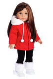 Winter Extravaganza - Clothes for 18 inch Doll - 3 Piece Outfit - Red Quilted Parka with Black Leggings and White Boots