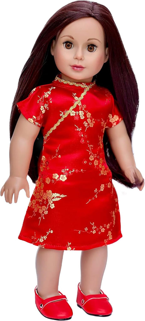 Asian Beauty - Clothes for 18 inch Doll - Asian Red and Gold Traditional Dress with Golden Shoes