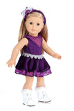 Ice Skating Queen - Clothes for 18 inch Doll - Purple Leotard with Ruffle Skirt, Decorative Headband and White Skates