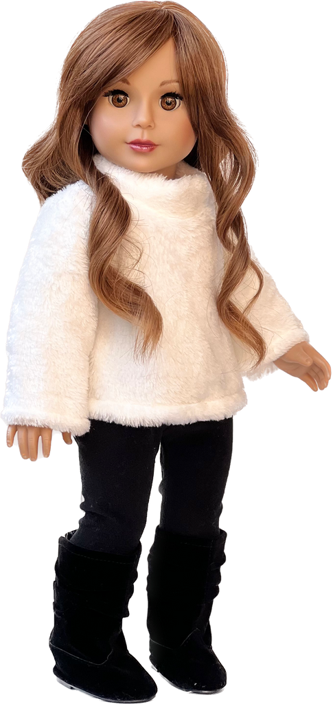 Arctic Glam - 3 Piece Outfit for 18 Inch Doll - White Sweater, Black Leggings and Black Boots - 18 inch Doll Clothes ( Doll Not Included)