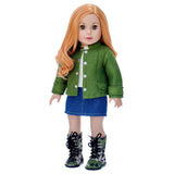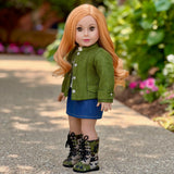 Camo Chic - 4 Piece Outfit for 18 Inch Doll - Ivory Tank Top, Denim Skirt, Green Jacket and Camouflage Boots - 18 Inch Doll Clothes ( Doll Not Included)