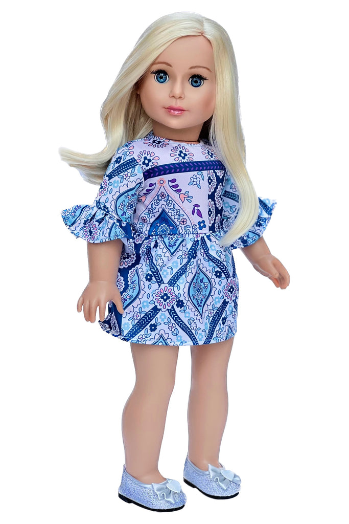 Party Dress - Blue Dress for 18 inch American Girl Doll