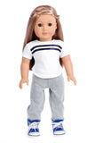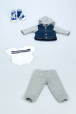 Tomboy - 4 Piece Doll Outfit - Jeans Jacket, Grey Sweatpants, T-shirt and Blue Boots