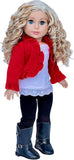 Uptown Girl - Clothes for 18 inch Doll - 4 Piece Outfit - Red Ruffled Jacket, White Tank Top, Black Leggings and Boots