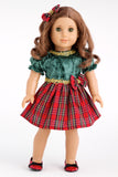 Christmas Classic - Clothes for 18 inch Doll - Green and Red Holiday Party Dress with Red Shoes and Bow